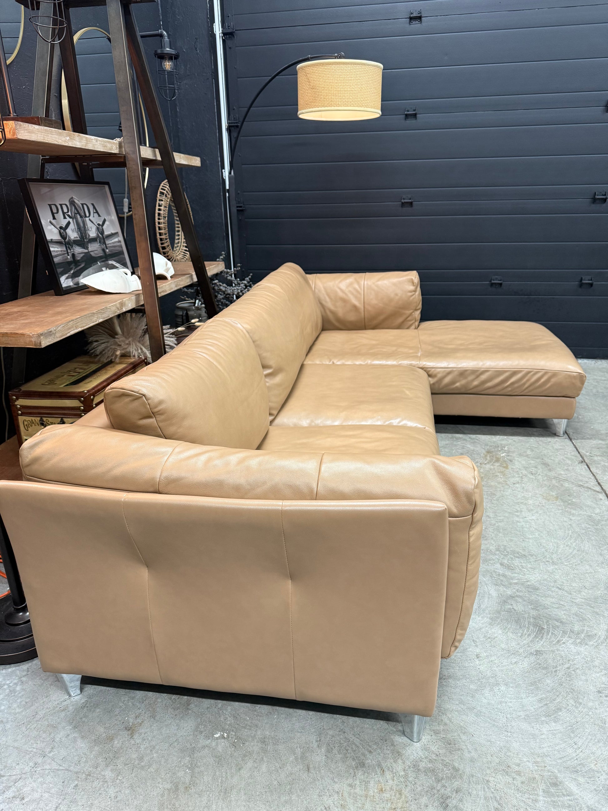 Muse&Merchant Cognac Genuine Leather Sectional