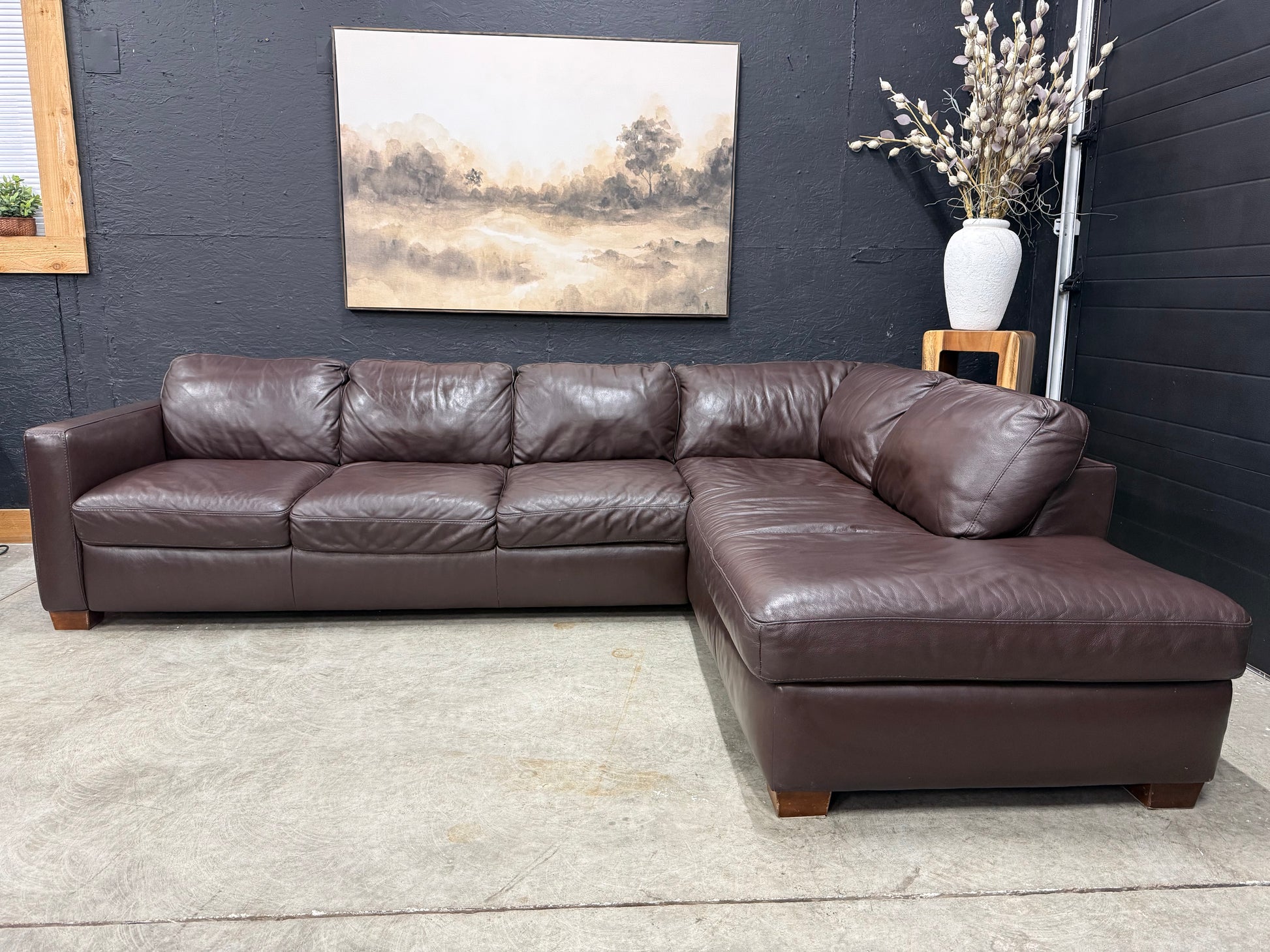 Genuine full grain leather Natuzzi Italsofa sectional in great condition. No marks or scratches. Comes apart in 2 pieces for easy transportation and set up. Delivery available if needed.