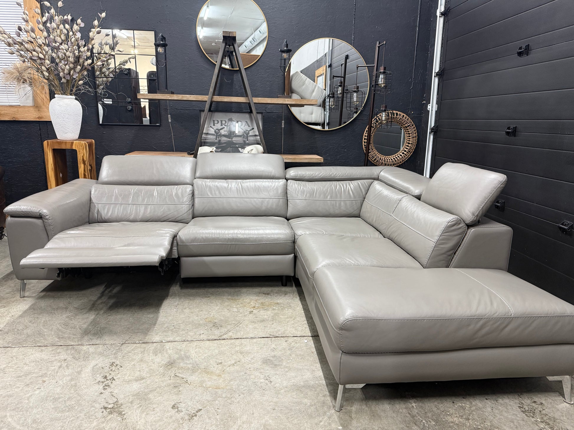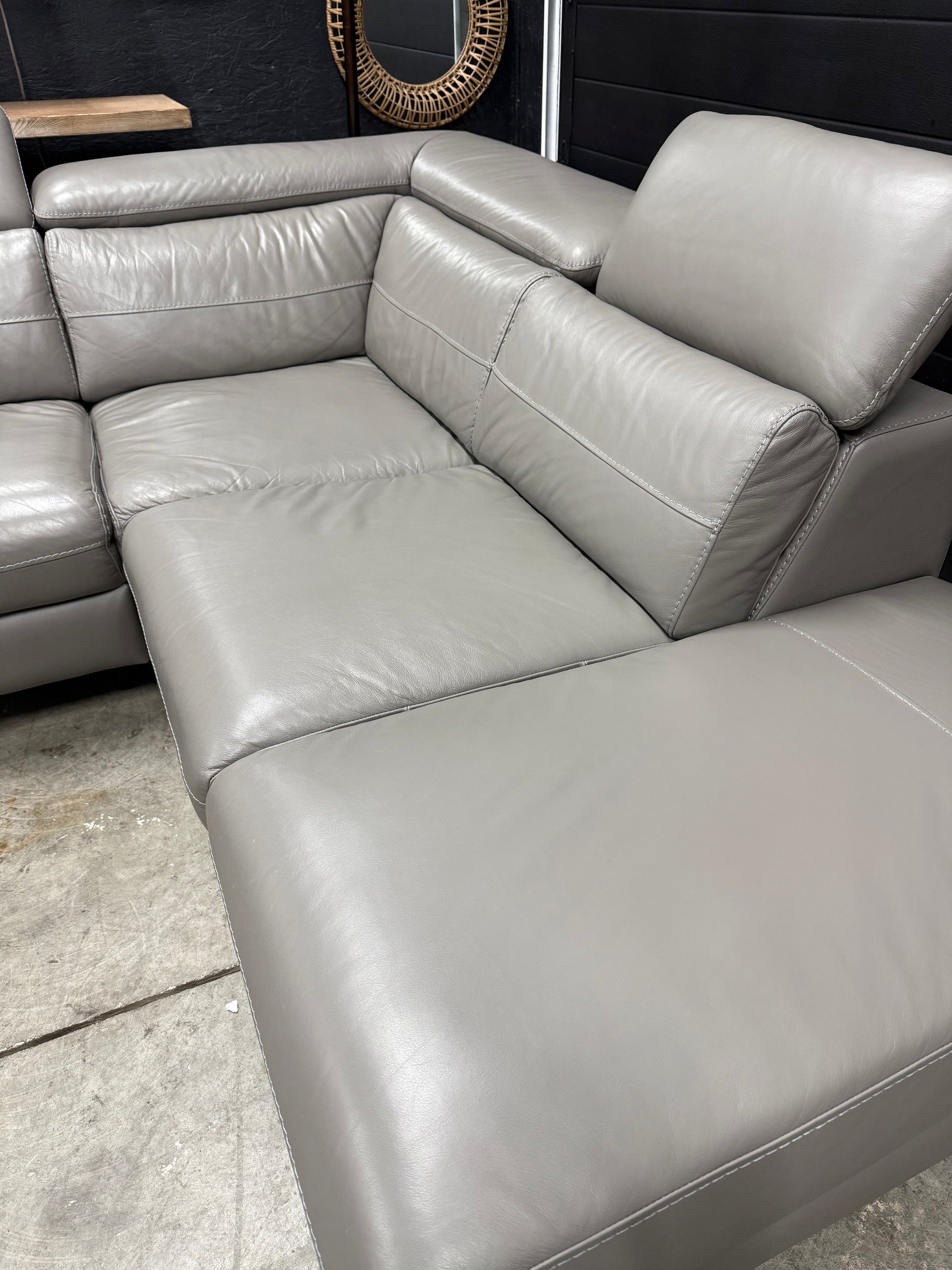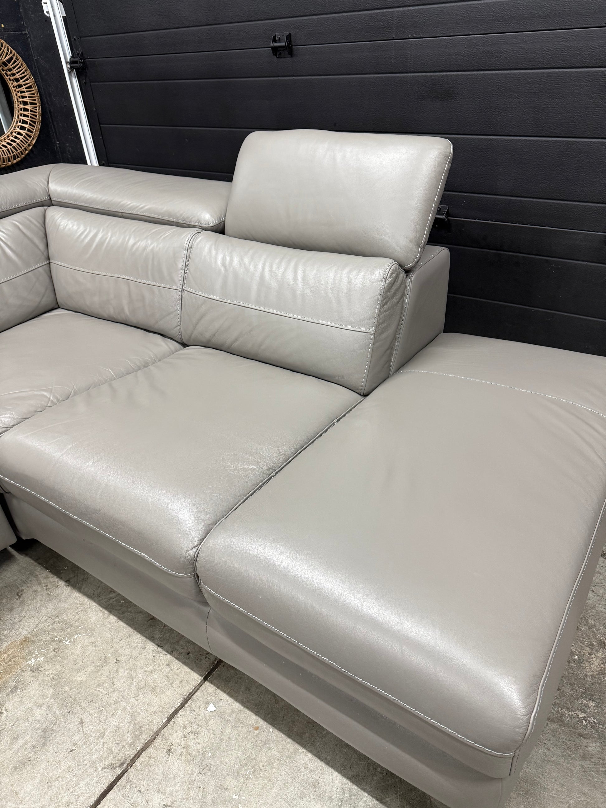 Beautiful Scan Design genuine leather power recliner sectional in excellent condition. 3 manual adjusting head rests. The power recliner works very smooth and quiet. Comes apart in 2 pieces for easy transportation and set up.